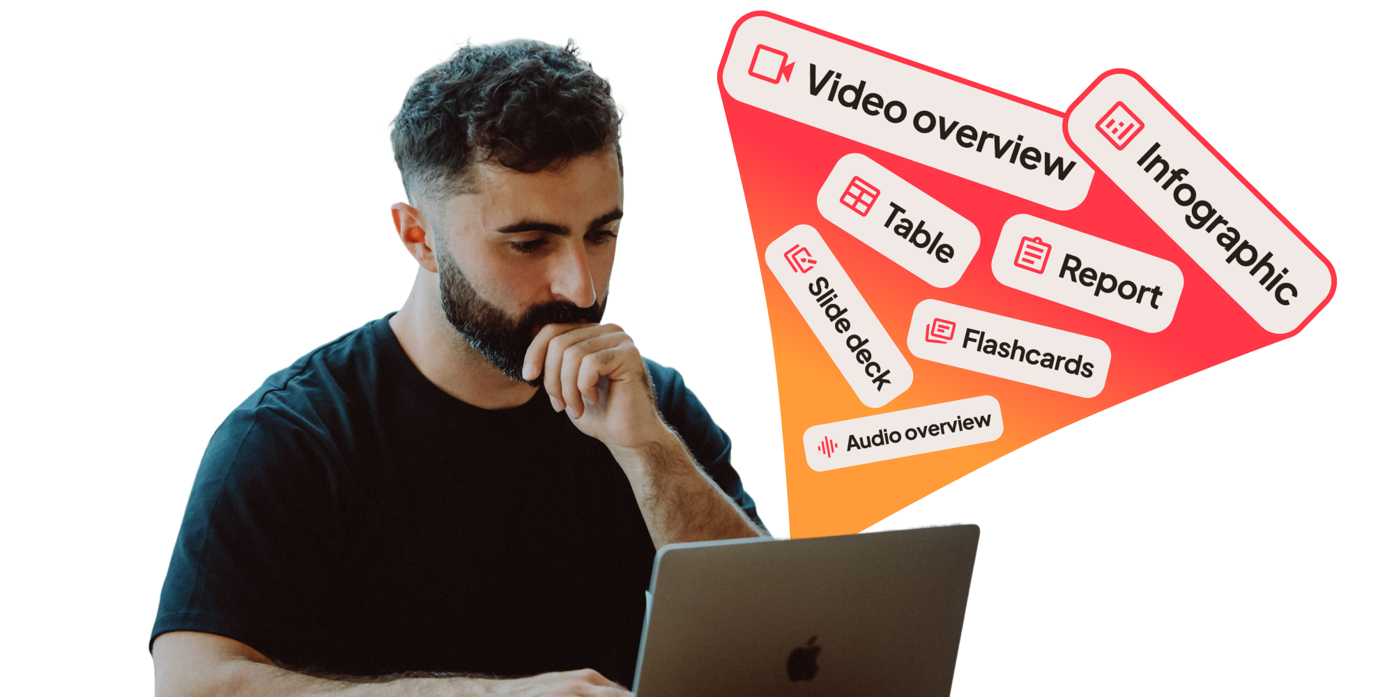 Generate polished infographics, data tables, and slide decks straight from your recordings. No reformatting, no copy-pasting — just your words, made visual.